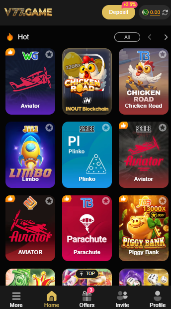 Overall, the V77 Game aims to provide a single place where players can enjoy multiple game types, manage their in-app wallet, and participate in events, all within a simple mobile interface.