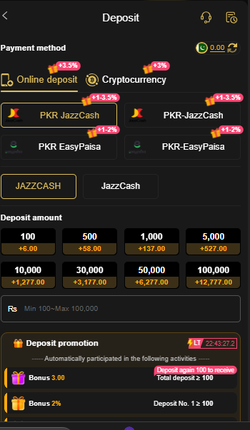 - Open the Wallet or Deposit section